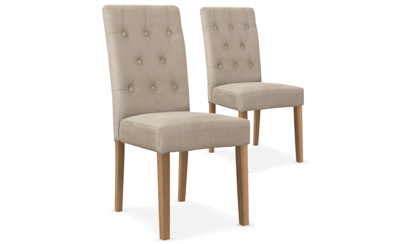 Le lot de deux chaises Cecil en tissu beige allie élégance et confort. Le haut dossier capitonné et les pieds droits en bois des chaises Cecil se marient aussi bien à un intérieur classique que contemporain. Chics et intemporelles, elles sont dotées d’une assise très moelleuse.