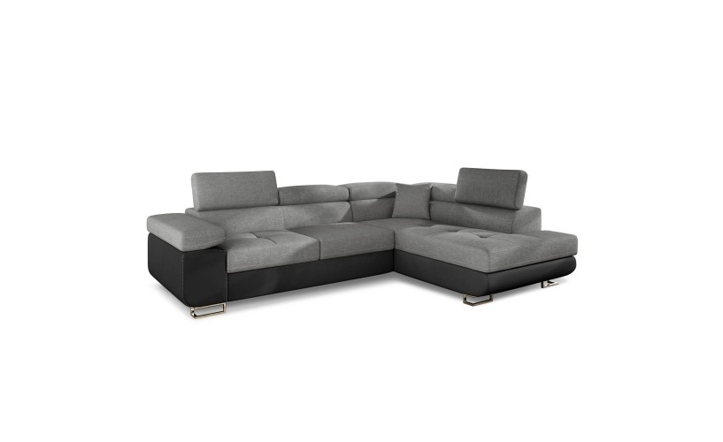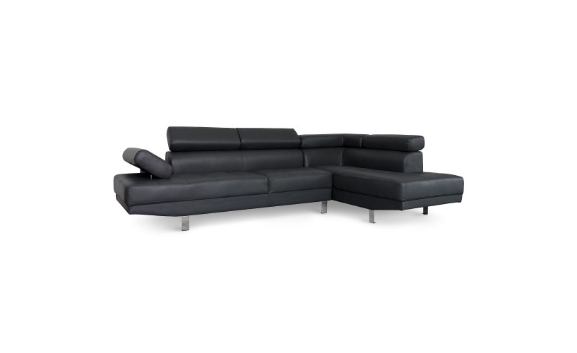 Le canapé d’angle avec têtières relevables Alfa noir est un magnifique canapé fixe, ultra design, idéal dans les intérieurs contemporains. Ses têtières et ses accoudoirs relevables vous permettent une assise plus ou moins droite selon vos besoins et vos envies.