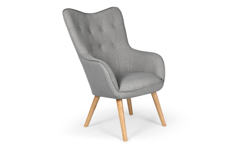 Le fauteuil scandinave Klarys en tissu gris possède un look très moderne et design, avec son dossier haut capitonné aux courbes élégantes. Ses pieds en bois naturel ajoutent une touche chaleureuse au tissu gris résistant. Son assise moelleuse vous permettra de profiter confortablement de vos soirées d’hiver.